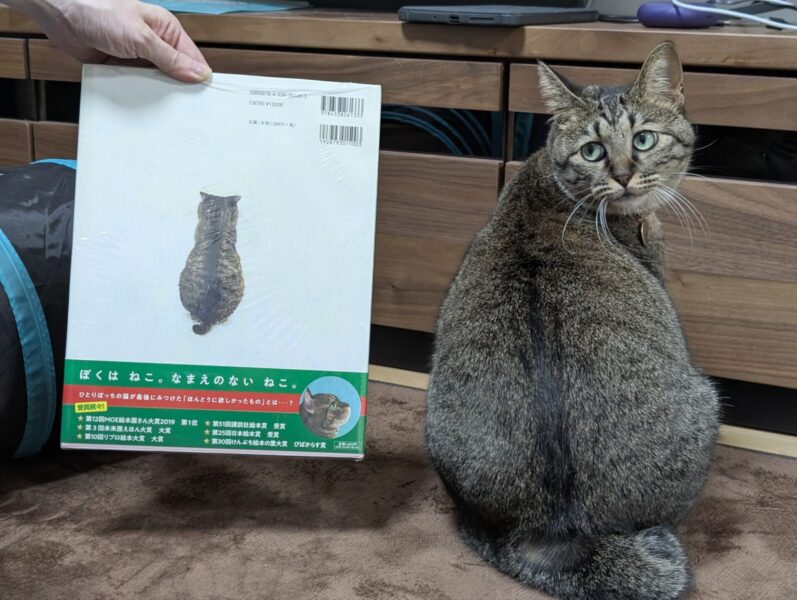 本屋に出かけた妻が衝動買いしてきた絵本がそっくりで、本の中から飛び出してきたような構図に。